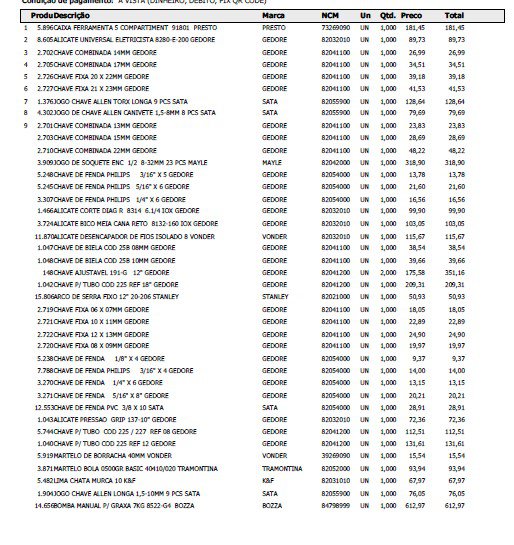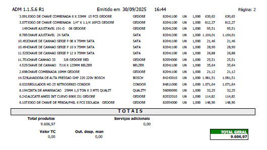 Pedido Ciara máquinas e equipamentos - 20.157